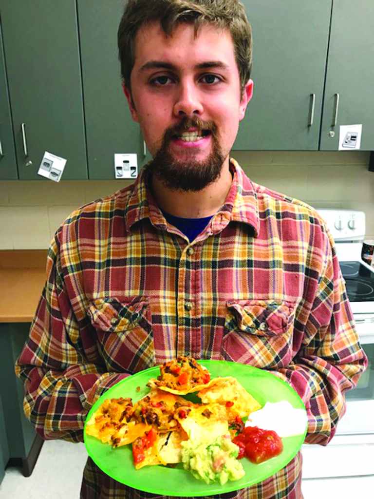 Josh Carpenter shows off the nachos and guacamole he made after a trip to buy groceries as part of a school program funded by the District 200 Education Foundation.