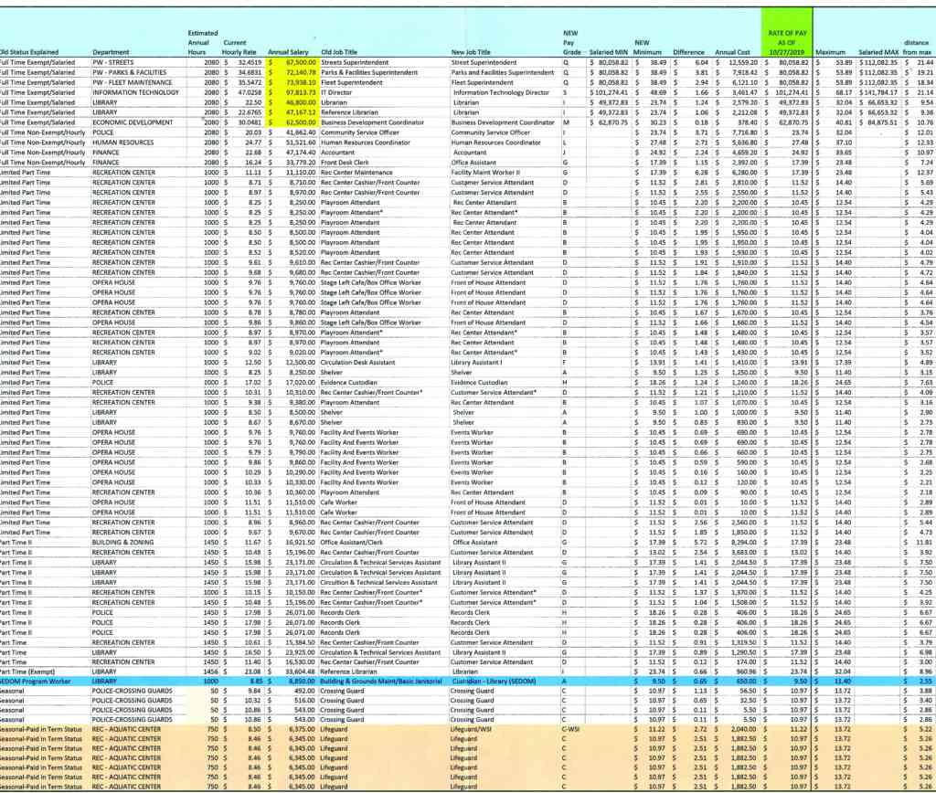 Spreadsheet of city pay adjustments