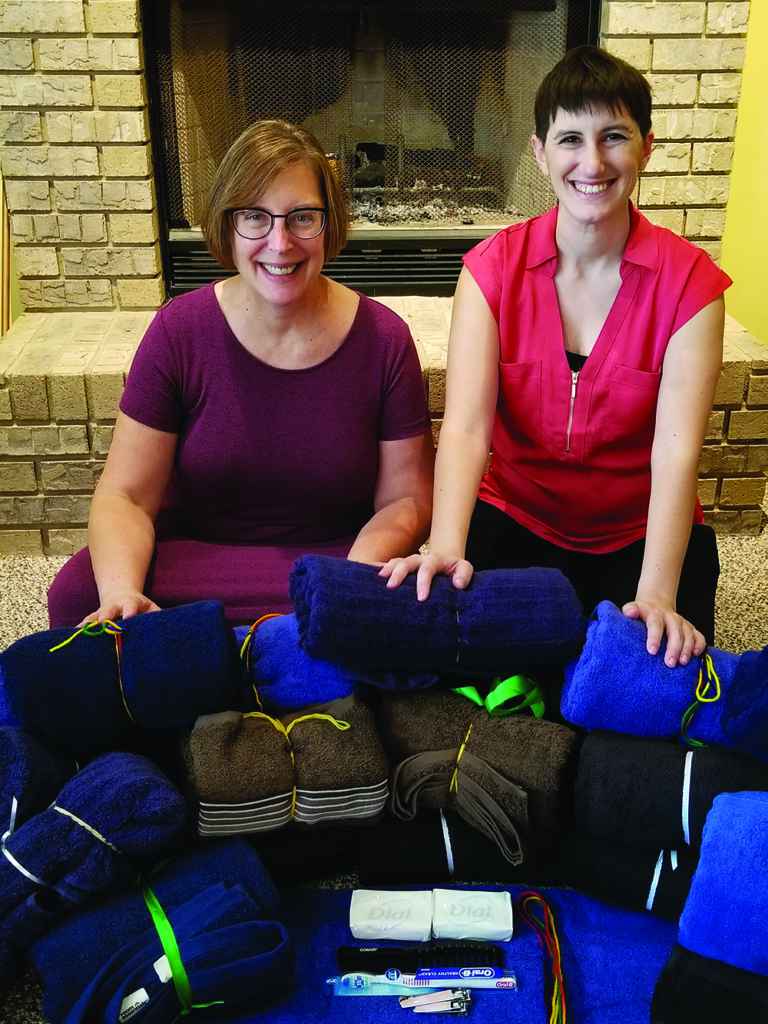 Courtesy photo |Grace Lutheran Church parishioners Mary Beth Martin-Bellavia and her daughter, Rachel, display some of the personal care kits assembled during the church’s annual service day.