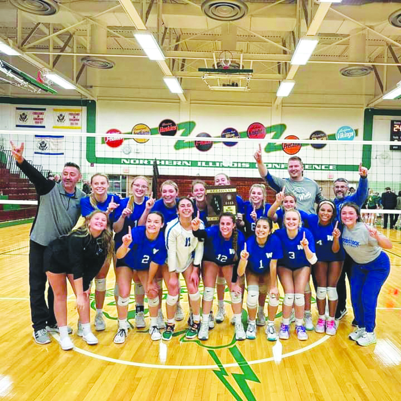 Blue Streaks volleyball players and coaches are all smiles Oct. 26 after winning the IHSA 3A Rockford Boylan Catholic Regional championship. (Courtesy photo)
