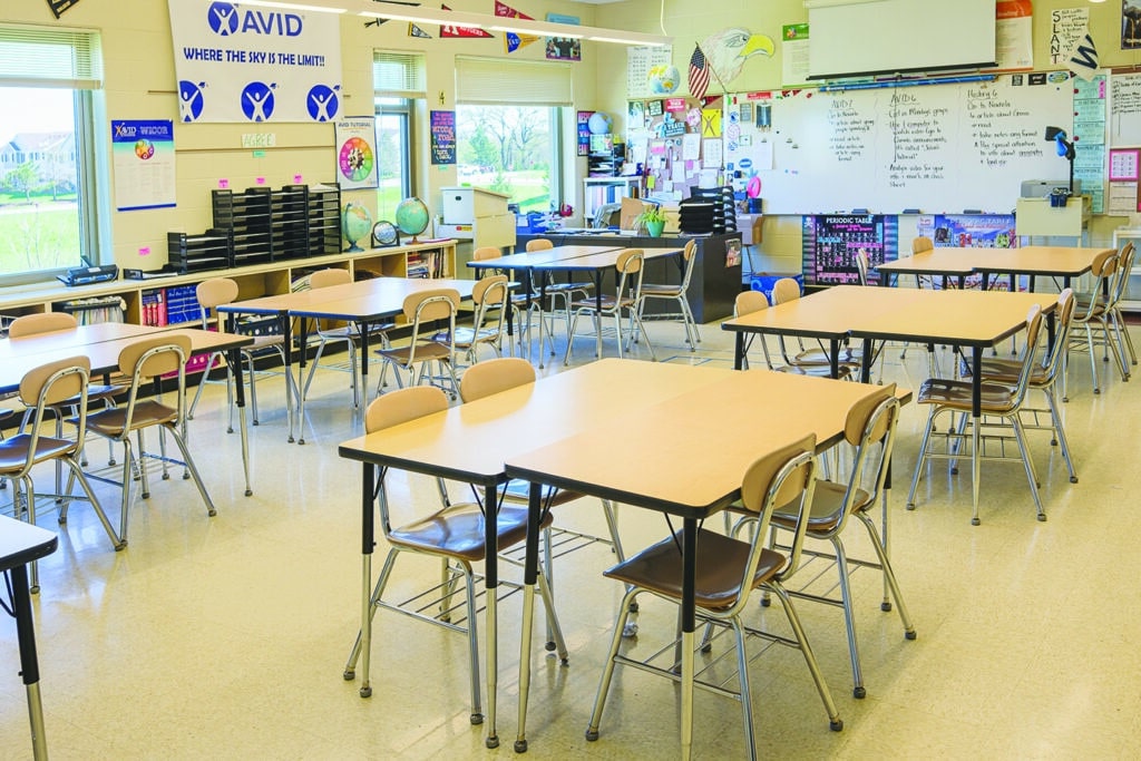 independent photo by andrew rousey An empty classroom awaits students and staff when school opens Wednesday. District 200 schools will be staffed and ready for the 2024-2025 school year after making significant progress in recruiting teachers over the summer.
