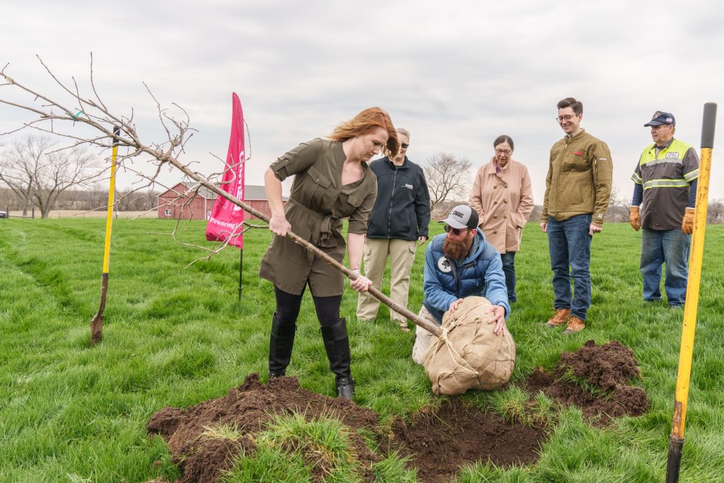 Com Ed plants a Burr Oak tree in the Bull Valley Dog Park