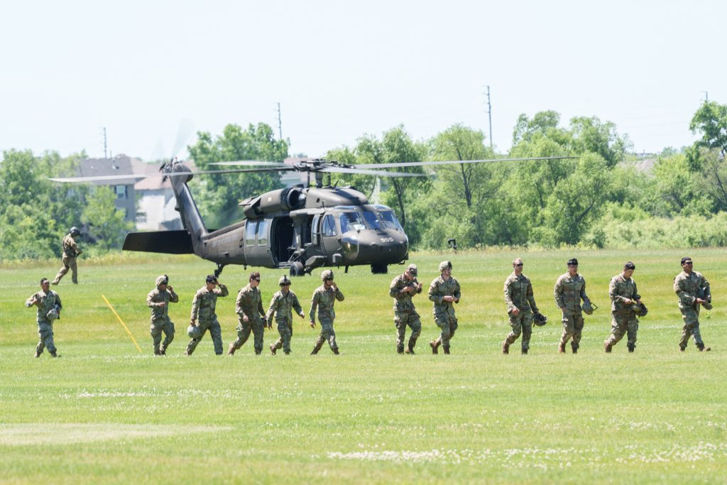 Military Helicopters drop off soldiers